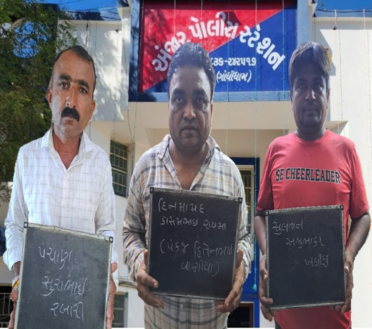 કચ્છખબરડૉટકોમ, અંજારઃ વરસામેડીમાં કંડલા એરપોર્ટને અડીને આવેલી વેલસ્પન કંપની પાસેની સર્વે નંબર ૬૪૨ની જમીન મૃત માલિકને ચોપડા પર જીવિત દર્શાવી બારોબાર વેચી ખાવાના કૌભાંડમાં પોલીસે ત્રણ આરોપીની ધરપકડ કરી છે. પોલીસે જમીન ખરીદનાર ધાણેટીના પચાણ સુરા રબારી તથા વેચાણ દસ્તાવેજમાં સહી કરનાર સુલતાન અભુભકર ખલીફા અને દિનમામદ કાસમ રાયમાની ધરપકડ કરી લીધી છે. આજે બપોર બાદ પોલીસે મૃત જમીન માલિક બનીને મહેશ શંકરભાઈ ચંદ્રાને જમીનની પાવર ઑફ એટર્ની લખી આપનાર મુંબઈના બે શખ્સની પણ અટક કરી લીધી છે. કાયદેસર કાર્યવાહી ચાલું હોઈ પોલીસે આ બેઉ આરોપી વિશે હજુ સત્તાવાર વિગતો જાહેર કરી નથી.
