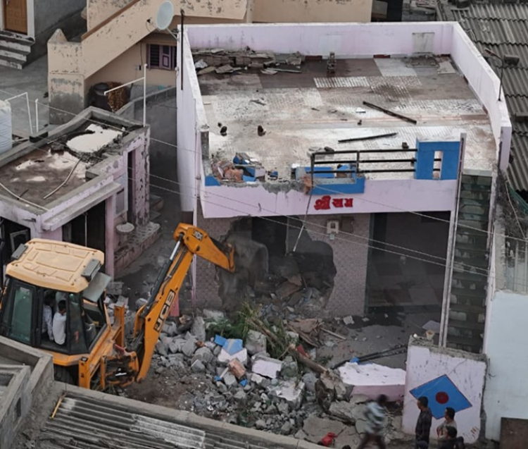 કચ્છખબરડૉટકોમ, અંજારઃ અંજારના વિજયનગરના કોલીવાસમાં સરકારી જમીન પર ગેરકાયદે મકાનમાં રહેતા કુખ્યાત આરોપી મહેશ ઊર્ફે ડાભલો મોતીભાઈ કોલીના મકાન પર આજે પોલીસે બુલડોઝર ફેરવી નાખ્યું છે. પોલીસે કહ્યું કે ઘણાં વર્ષોથી સરકારી જમીન પર ગેરકાયદે મકાનનું દબાણ કરી દેવાયું હતું. મહેશ ઊર્ફે ડાભલા સામે બળાત્કાર, છેડતી, ખૂનનો પ્રયાસ, ધાકધમકી, મારામારી, પોક્સો, એટ્રોસિટી, બાઈક ચોરી, ચેઈન સ્નેચિંગ સહિતના વિવિધ ગંભીર ગુનાઓ નોંધાયેલાં છે. ગત ૨૬ જૂનની રાત્રે મહેેેશે તેના સાગરીત સાથે આદિપુરના શિણાય નજીક ૧૫ વર્ષની કિશોરીને પોલીસના નામે દમદાટી આપી, તેનું અપહરણ કરી નિર્જન જગ્યા લઈ સામૂહિક દુષ્કર્મ આચર્યું હતું. દિલ્હીના નિર્ભયાકાંડ જેવી આ ઘટનાએ સમગ્ર કચ્છમાં ભારે ચકચાર મચાવી હતી.