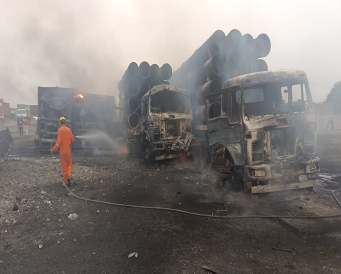 કટારિયા પાસે ગેસ ભરેલું ટેન્કર આગનો ગોળો બનીને ફાટતાં મોટી દુર્ઘટના સર્જાઈ