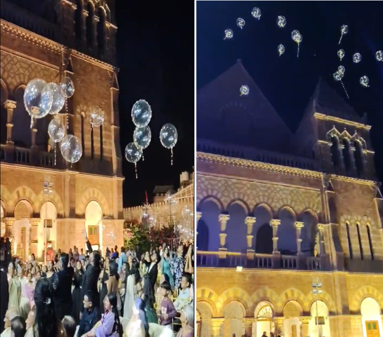 લગ્ન પ્રસંગે લાઈટીંગ સિરિઝ સાથે ફુગ્ગાં ઊડાડાયેલાં