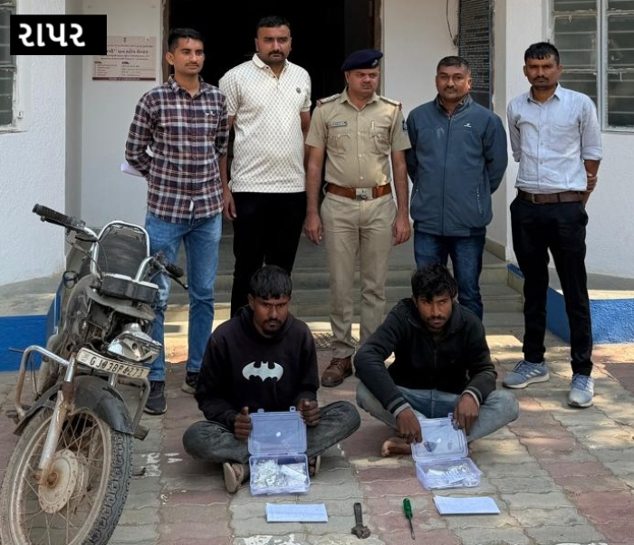 પોલીસે મુકેશને હળવદથી અને રમેશને અમરેલીથી ઝડપી પાડીને એક મોટર સાયકલ અને ૪૩ હજારની કિંમતના ચાંદીના વિવિધ દાગીના રીકવર કર્યાં છે. કામગીરીમાં રાપર પીઆઈ જે.બી. બુબડીયા, પીએસઆઈ વી.એચ. કાતરીયા અને રાપર પોલીસનો સ્ટાફ જોડાયો હતો.