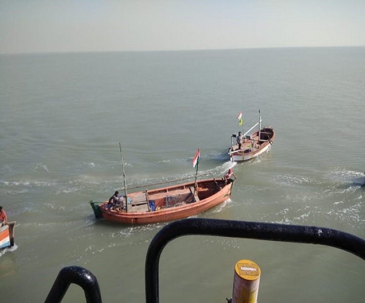 કચ્છખબરડૉટકોમ, ગાંધીધામઃ કંડલાની ખાડીમાં ઉભા રહેલા ટગ અને બાર્જના ખલાસીઓ સાથે સ્થાનિક માછીમારોએ ધાક-ધમકી કરી પથ્થરમારો કર્યો હોવાનો બનાવ બહાર આવ્યો છે. બનાવ અંગે જાણ થતાં કંડલા મરીન પોલીસ ઈન્સ્પેક્ટર વી.એફ. ઝાલા અને તેમના સ્ટાફે તુરંત જ બોટ મારફતે મધદરીયે ધસી જઈ પથ્થરમારો કરનારી 5 બોટના 7 માછીમારોને દબોચી લીધાં હતા. બનાવ ગઈકાલે બપોરે પોણા 3 વાગ્યાના અરસામાં બન્યો હતો. મુંબઈની કંપનીના બાર્જ અને ટગ કંડલા પોર્ટ પર મશીનરી મટીરીયલ લૉડ કરી પરત મુંબઈ જતા હતા. જો કે, કસ્ટમ ક્લિયરન્સની પ્રક્રિયાના કારણે કંડલાથી 10 નોટિકલ માઈલ દૂર આઉટર એન્કરેજ એરીયામાં તેને એન્કર કરાઈ થોભાવી દેવાયાં હતા. દરમિયાન, ગઈકાલે બપોરે 5 બોટમાં આવેલાં સ્થાનિક માછીમારોએ ટગ અને બાર્જના કેપ્ટન સાથે ઝઘડો કર્યો હતો. ‘તમારે અહીં બાર્જ લઈને નહીં આવવાનું, અમારી જાળને નુકસાન થાય છે’ તેમ કહી તેમણે ટગ-બાર્જના ખલાસીઓ સાથે ધાક-ધમકી કરી પથ્થરમારો કર્યો હતો. બનાવ અંગે કેપ્ટને કંડલા પોર્ટને જાણ કરતાં માછીમારો બોટ લઈને નાસી છૂટ્યાં હતા. બીજી તરફ, માછીમારોએ કરેલાં પથ્થરમારા અંગે જાણ થતાં કંડલા પોલીસ પેટ્રોલીંગ બોટ લઈ મધદરીયેથી પાંચેય બોટ સાથે માછીમારોની ધરપકડ કરી હતી. આરોપીઓ કંડલા આસપાસના ગામનાં માછીમારો છે.
