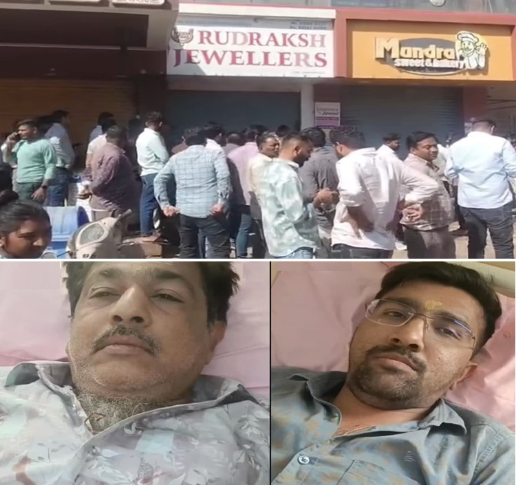 કચ્છખબરડૉટકોમ, મુંદરાઃ મુંદરાના બારોઈ રોડ પર રુદ્રાક્ષ જ્વેલર્સ નામની જ્વેલરી શોપમાં ત્રાટકેલાં ચાર લૂંટારુઓએ તમંચાના નાળચે પિતા પુત્રને ડરાવી ધમકાવી સોના ચાંદીના ઘરેણાંની લૂંટનો પ્રયાસ કરતાં ચકચાર મચી ગઈ છે.