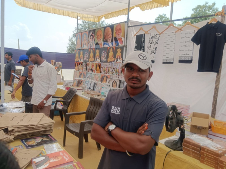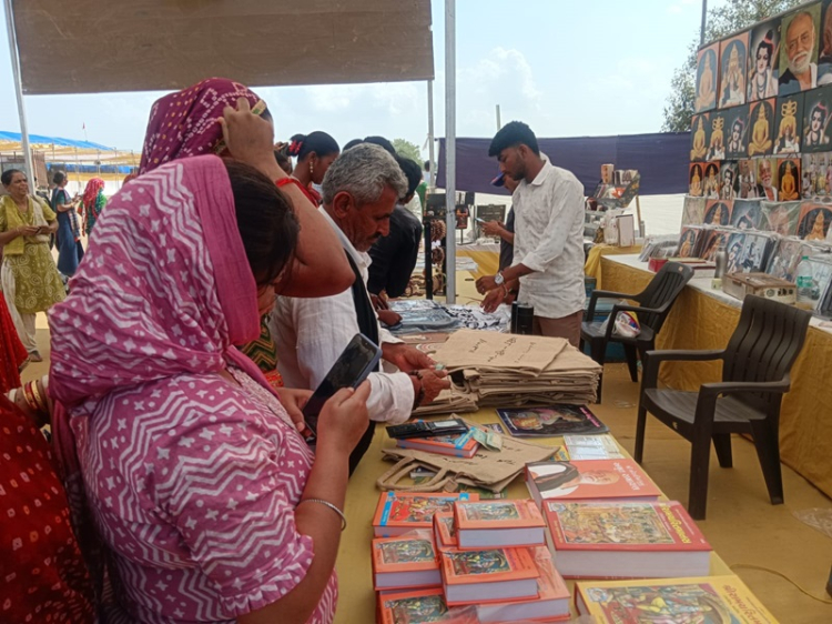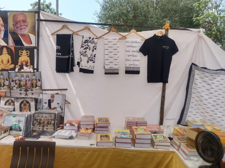 કથાસ્થળે વિવિધ ધાર્મિક પુસ્તકો, મોરારિદાસની ફોટોફ્રેમ, ‘સત્ય પ્રેમ કરુણા’ના સ્લોગન લખેલાં ટીશર્ટ સહિતના લુગડાં, કી-ચેઈન સહિતની વિવિધ અવનવી ચીજવસ્તુઓ, આયુર્વેદિક ઔષધિઓ સહિતની વિવિધ પ્રકારની ધાર્મિક ચીજવસ્તુઓનું વેચાણ કરતાં સ્ટોલ્સ અને પાથરણાંવાળા નાનાં વેપારીઓ જોવા મળે છે. ગ્રાહકોની ભારે ભીડ નાની મોટી ચીજવસ્તુ ખરીદતી જોવા મળે છે. આ વેપારીઓ જોડે વાત કરતાં તેમણે જણાવ્યું કે મોરારિદાસની જ્યાં જ્યાં કથા યોજાય છે ત્યાં ત્યાં તેઓ તેમનો સ્ટોલ નાખે છે.